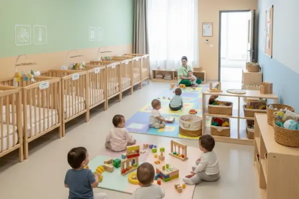 Um dos erros mais comuns na organização do berçário é não separar adequadamente os espaços destinados a diferentes atividades. O ambiente do berçário deve contemplar áreas distintas para troca de fraldas, alimentação, sono e atividades lúdicas. A ausência dessa separação funcional pode gerar confusão para os bebês, dificultar a rotina dos profissionais e até comprometer a higiene e a segurança do espaço.